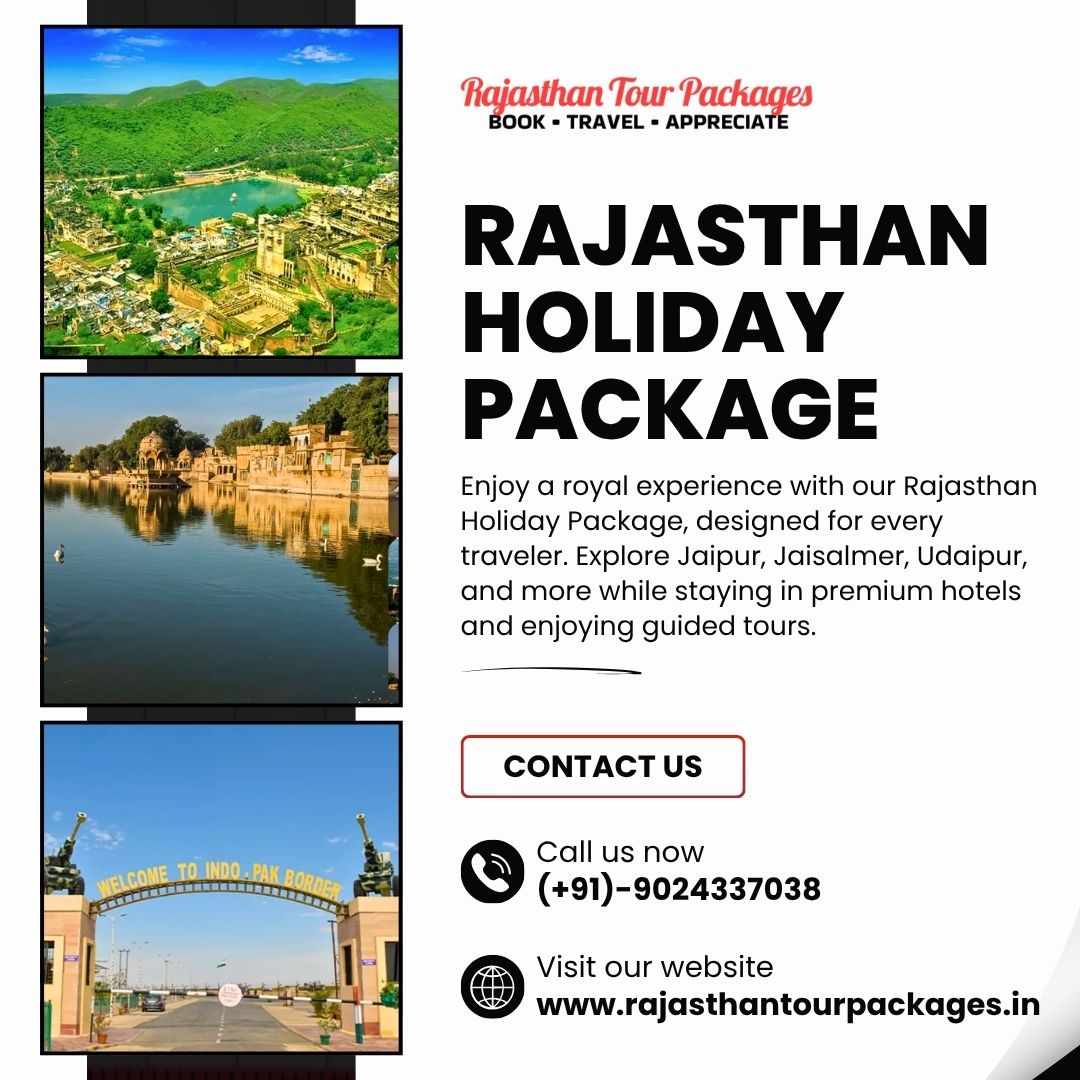 Enjoy a royal experience with our Rajasthan Holiday Package, designed for every traveler. Explore Jaipur, Jaisalmer, Udaipur, and more while staying in premium hotels and enjoying guided tours. Our Rajasthan Holiday Packages offer seamless travel, cultural experiences, desert safaris, and local cuisine tastings. Perfect for families, couples, or solo travelers, these packages ensure your trip is memorable, comfortable, and hassle-free.